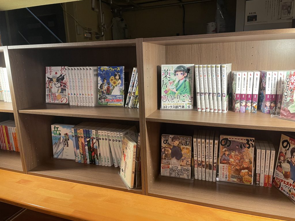 CAFE RAMENA 函館 BOOKS SPACEは、「漫画」や「小説」など約1000冊を蔵書している小さな本屋です。