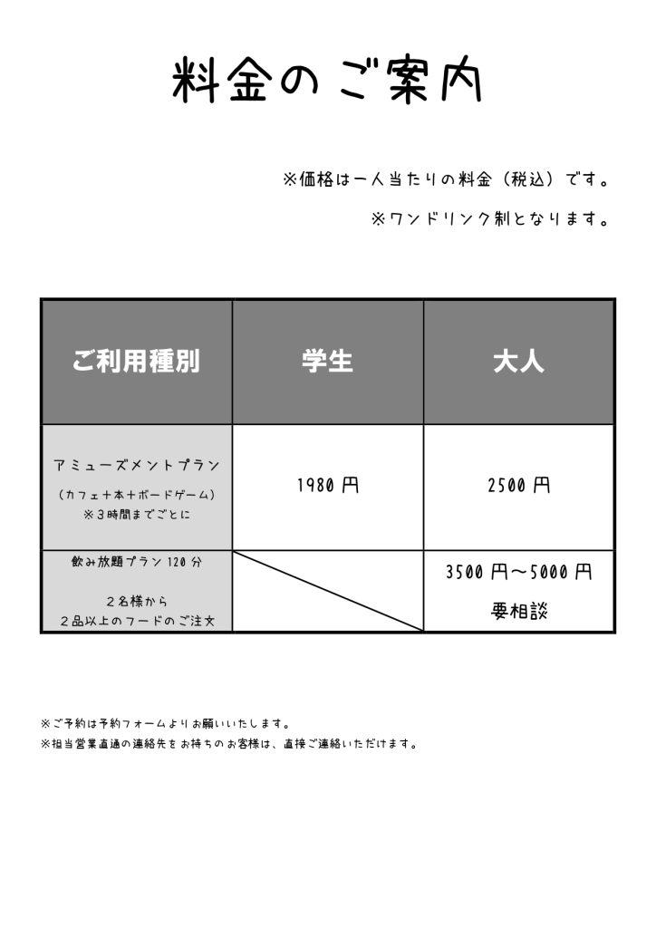 ※カフェのみのご利用でもアミューズメントプランの基本料金が加算されます。