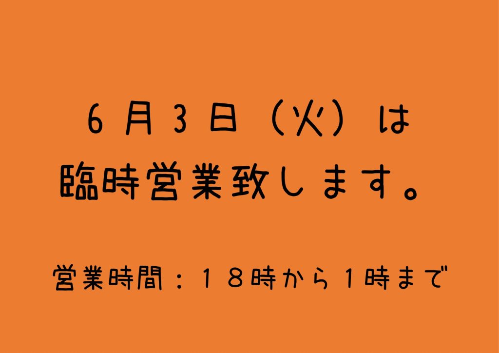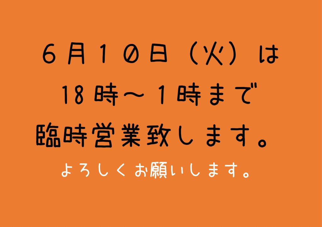 6/10(火)は18時~1時まで臨時営業致します。 -